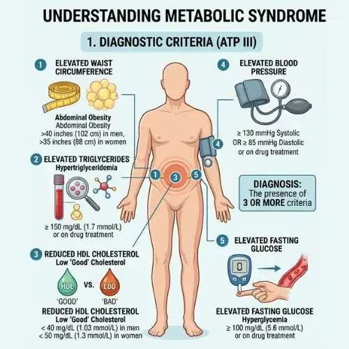 Metabolic syndrome is not a single disease. It is a cluster of five interconnected metabolic abnormalities that, when present together, dramatically increase the risk of type 2 diabetes, heart disease, stroke, and non-alcoholic fatty liver disease. According to the National Cholesterol Education Program Adult Treatment Panel III — the most widely used clinical definition — a diagnosis of metabolic syndrome requires three or more of the five criteria.